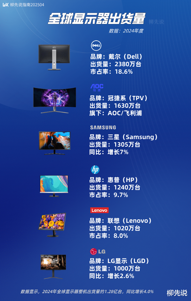 全球显示器哪家强?显示器品牌出货量排名:惠普第4,冠捷高居第2